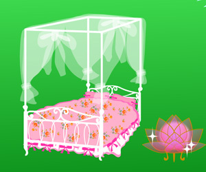 お勉強キャンペーンアイテムの小花柄ロマンチックベッド(pk)と、