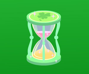 happyの魔法が掛けられている緑の砂時計。