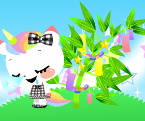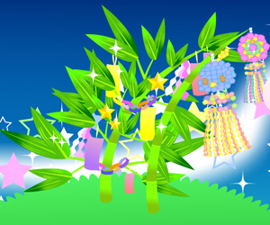 短冊や飾りが付いて…。
