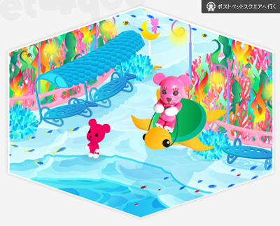 mooonの様子がわかる企画第二弾。 ペットたちが泳いだり歩いたりする美しい海底の世界。 カメカメカームメというマシーンで移動したりもするそうです。