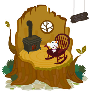 アイテムの「レトロストーブ」「ロッキングチェア」です。
