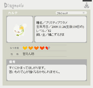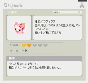 リヴリーの性格やなつき度を見ることができます。