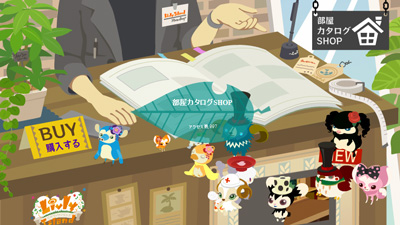 新パークがオープンしました。 こちらは部屋カタログSHOPです。 マイルームの壁紙やアイテムを販売するショップですが、 壁紙が高すぎます!ちょっと買えませんね。