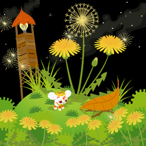 帽子の、頭上のタンポポとタンポポの冠です。