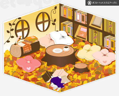 落ち葉が敷きつめられた、秋らしくて暖かそうなお部屋。